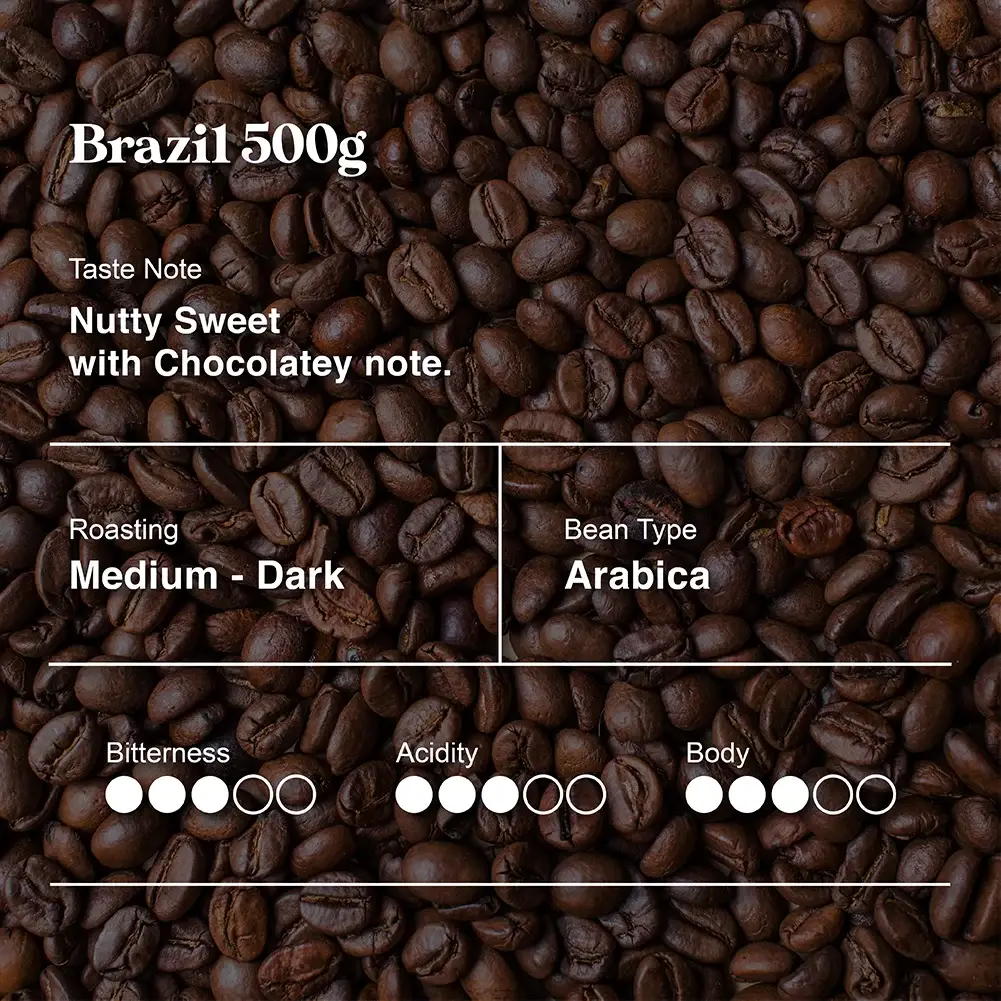 Brazilian coffee beans, known for their sweet and nutty flavors, offer a smooth chocolatey finish.
