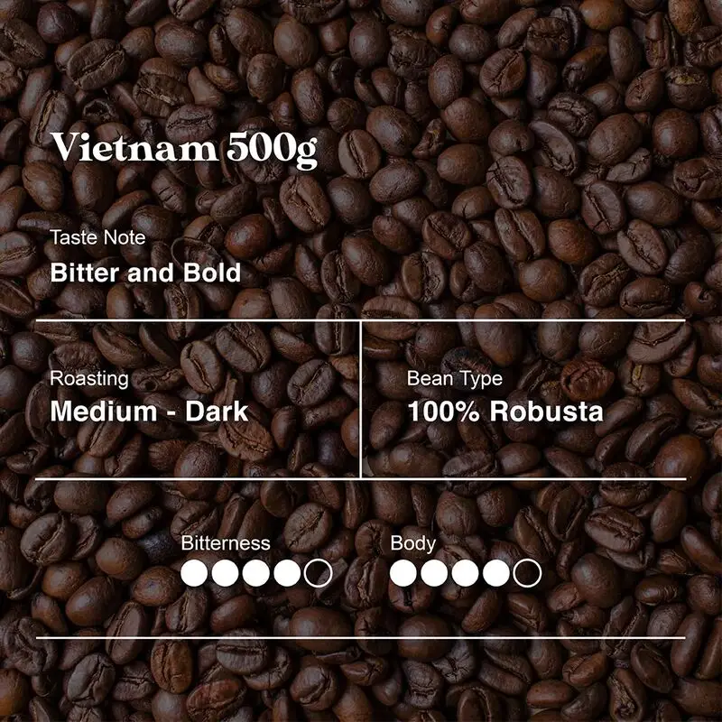 Experience the bold and intense flavor of Vietnamese Robusta beans, perfect for a strong morning brew.